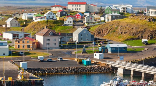 斯蒂基斯霍尔米Stykkishólmur(游览时间约30分钟):电影《百日梦想家》中遥远、宁静又带着点小怪异的格陵兰小镇实际拍摄地。除了多彩、古老的小房子、美丽的街道,镇上的一大地标是斯蒂斯基霍尔米教堂,造型清奇,非常有点后现代的味道。