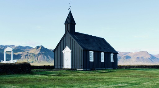 布迪尔黑教堂 Búeakirkja(游览时间约15分钟):位于斯奈山半岛的南部海岸,这里只有一个酒店和一个叫做 Búeakirkja的黑色小教堂,它独自坐落在一片熔岩之中。 是冰岛古老的木教堂之一,历史记载可追溯到 1703 年,不过由于是纯木 质结构,因此 300 多年来被毁与重建来来回回好几遭,如今教堂的建筑体在上世纪 80 年代时重新修整过。教堂本身 不大,其特点在于除了门窗是白色外其他通体黢黑,而教堂的旁边,就是教区的墓地,显得更加端庄肃穆。教堂背 朝大海,孤零零地站在荒凉而空旷的原野上,映衬着远处的雪山瀑布,经常成为摄影师镜头中的风景。