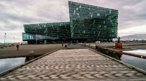 【哈帕音乐厅及会议中心】外观:2011 年开幕的哈帕音乐厅,是雷克雅维克新兴的地标建筑,由不规则形状强化玻璃及钢骨结构组成,色彩瑰丽幻妙,白昼光影让建筑随时都有百变风貌,随著光影变化彷若一个闪亮的珠宝盒。