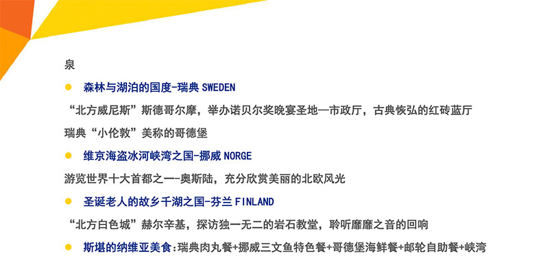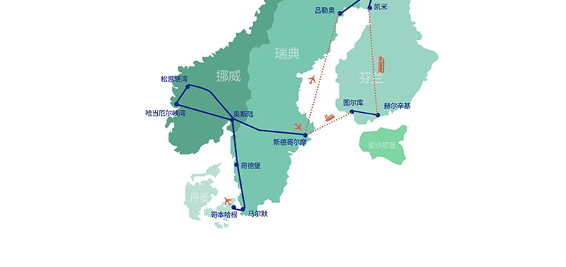 6.基本景点大门票(只含一次极光追光3小时、圣诞老人村含证书、岩石教堂、斯德哥尔摩市政厅含讲解),其它为外观或免费;