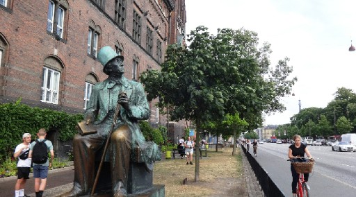 【安徒生的铜像】,安徒生铜像呈坐着的形态、手里拿着一本书,是游客最好合照的一尊铜像。
