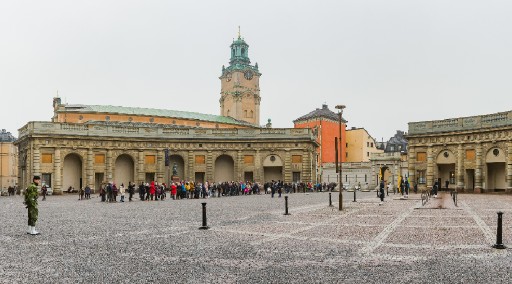 【瑞典皇宫广场】外观,欧洲最大的王室住所之一,现仅用于处理政务和招待外宾,是王室的办公室,幸运的话还能体验气氛热烈的皇家卫兵换岗仪式。
