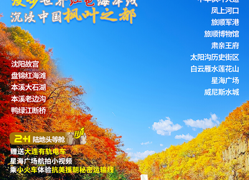 【白云雁水莲花山】(不含往返景交 100 元/人),莲花山观景台是大连市内离天最近、离海最近、离城最近的一座山峰!这里可以带您乘坐欧式小火车登上 259.6 米的莲花山峰 欣赏 360°全景大连.它是我国著名的地质学家李四光发现的地质珍迹:莲花状构造.它矗立在海岸之滨,是欣赏大连风光的第一制高点。体验一站已有百年历史至今仍被使用的有轨电车,纯木质的内饰很有年代感,对于游客来说这是必须要打卡的一站,望着车外的老房子,你会感觉自己开启了逆行的时光之旅… 【俄罗斯风情一条街】(约 60 分钟)俄罗斯风情一条街地处繁华的胜利桥西北,已有百年历史。是全国第一条具有俄罗斯十九、二十世纪风格的俄罗斯风情街。现成为大连最出名的小商品批发步行街。