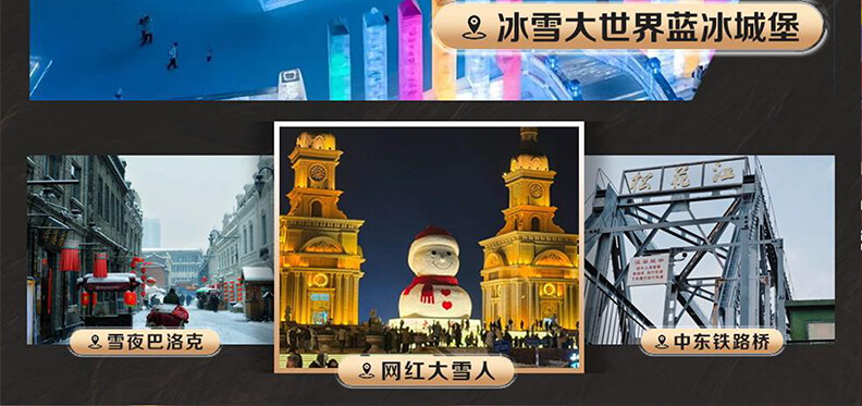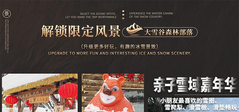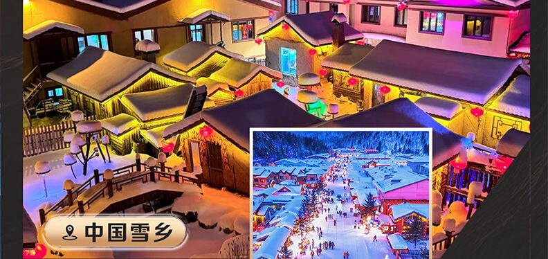 赠送:马拉爬犁+雪上飞碟、森林雪谷+冰雪嘉年华套票、大秃顶子山雪地摩托、梦幻家园、雪乡航拍小视频