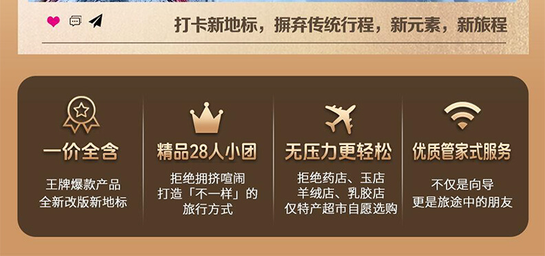 备注:行程内标注赠送项目,赠送项目任何原因不去不退费不换项目,赠送项目均无优惠政策。行程中所含活动因个人原因不能参加的,一律不退款。