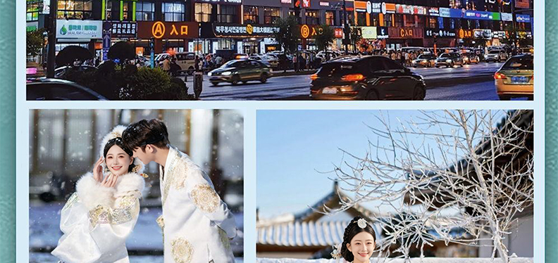 【雪韵大街】一条不很长不很宽却让游人流连忘返的街道,这是曾经的森林小火车道也是贯穿雪乡的唯一一条主街道,这里有各式民居、各种小吃、各色商铺,家家户户的前门后院里,只要有平面,都会被老天涂抹上一层厚厚的奶油。夜幕降临还会有大爷大妈出来扭秧歌,大花脸和经典红配绿衣裳,让你完完全全体会到我们东北的的热情和奔放。