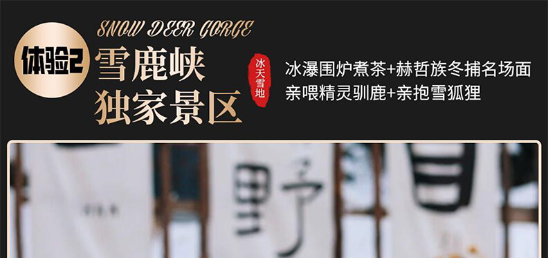 2、雪鹿峡景区为打包套票,不接受任何优惠证件,及年龄优惠,不退费。