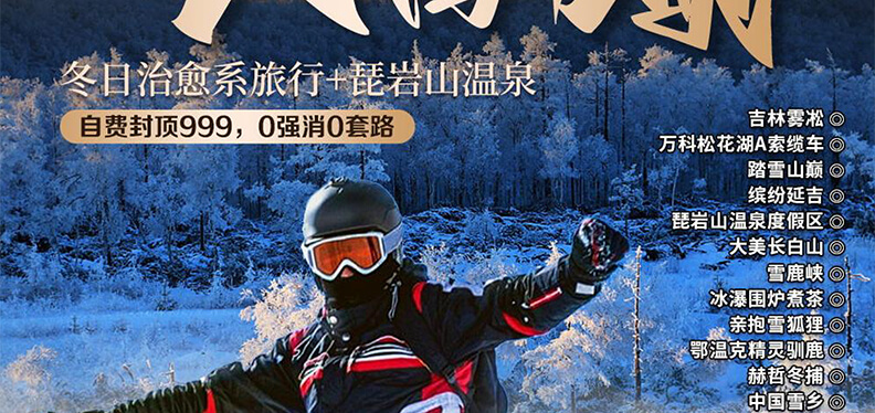 【征服冰峰·驭雪疾驰——大秃顶子山雪地摩托狂想曲】(雪地娱乐费用自理380/人)闯入东北之巅,大秃顶子山的纯白秘境,跨上轰鸣的雪地摩托,撕裂寂静冰川,征服巍峨雪岭!油门一拧,如箭离弦!在深及膝间的粉雪上划出完美弧线,冲陡坡、穿林海、跃冰河,感受寒风刮过面罩的刺痛与快感,做冰雪世界的荒野猎人!