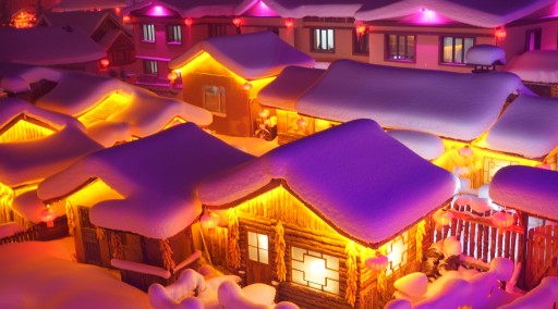 【雪韵大街】一条不很长不很宽却让游人流连忘返的街道,这是曾经的森林小火车道也是贯穿雪乡的唯一一条主街道,这里有各式民居、各种小吃、各色商铺,家家户户的前门后院里,只要有平面,都会被老天涂抹上一层厚厚的奶油。夜幕降临还会有大爷大妈出来扭秧歌,大花脸和经典红配绿衣裳,让你完完全全体会到我们东北的的热情和奔放。