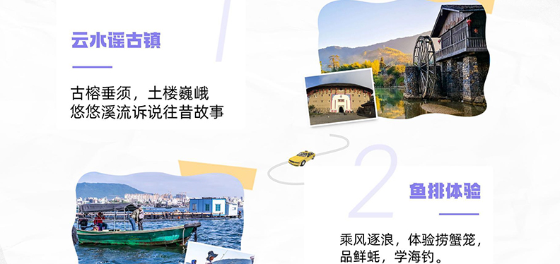 旅游用餐6早3正餐,八菜一汤、十人一桌,如一桌不足十人,菜的数量相应减少,6人以下按实际餐费安排自助或闽南风味餐或福州特色小吃,)正餐餐标50元/人,儿童含半餐(提示:个别餐厅里会有免税商场,不是行程中的购物店,客人不必停留)(所含早餐均为占床位赠送,未用不退费用,不占床不含早,早餐现付自理)