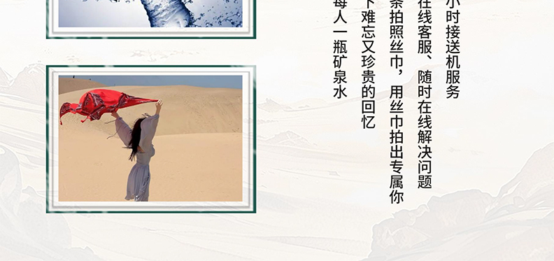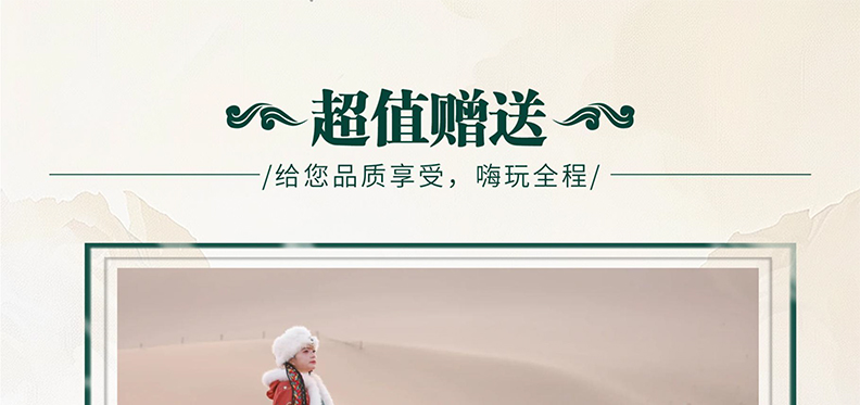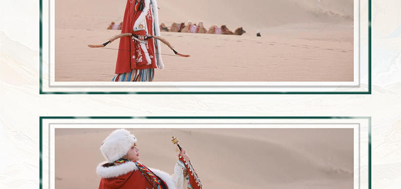 2.因西部地域辽阔,有时坐车时间较长,游客需提前做好心理准备。而且在很多情况下,游客需下车行走或体验骑马、骑骆驼的乐趣,所以备上一双舒适而又合脚的旅行鞋尤其重要。在参加一些特殊的野外活动(如骑马、游船时)建议穿着一些宽松的衣裤。
