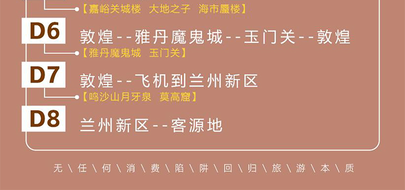 8.补充:因交通延阻、天气、航班取消或更改时间等不可抗力因素所引致的额外费用(客人自理);火车票如一经出票,退票则产生损失!人力不可抗拒的自然因素,不能完成或延误上述行程,所有产生的费用客人自理。