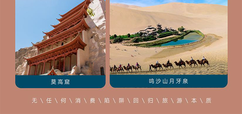 2.因西部地域辽阔,有时坐车时间较长,游客需提前做好心理准备。而且在很多情况下,游客需下车行走或体验骑马、骑骆驼的乐趣,所以备上一双舒适而又合脚的旅行鞋尤其重要。在参加一些特殊的野外活动(如骑马、游船时)建议穿着一些宽松的衣裤。