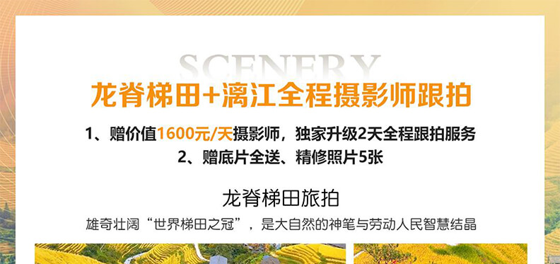 9、增值服务:龙脊梯田+漓江2天摄影师全程跟拍、底片全送、精修照片5张