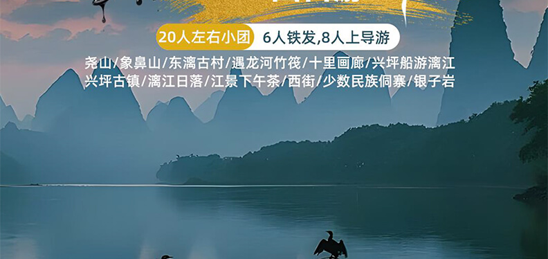 导游:桂林金牌专职中文导游提供贴心服务,如团队人数不足6人(8人以上安排导游),安排司机兼管家服务;