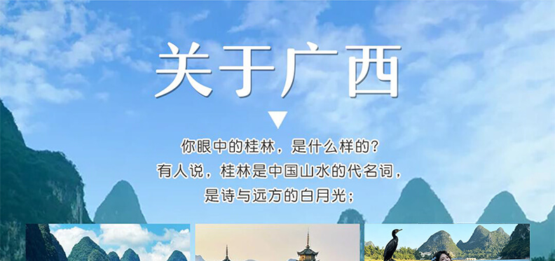购物:本行程安排参观桂林特色少数民族村寨内设商场,行程结束前安排正规大型桂林土特产超市选购桂林伴手礼