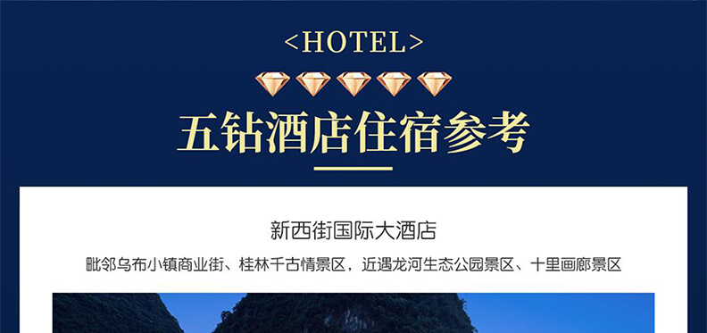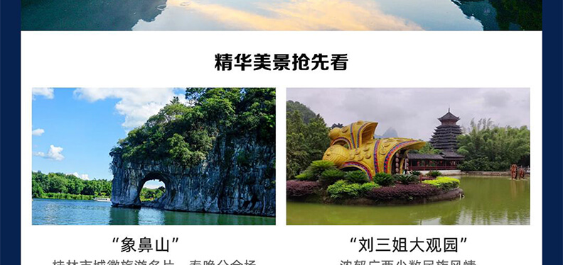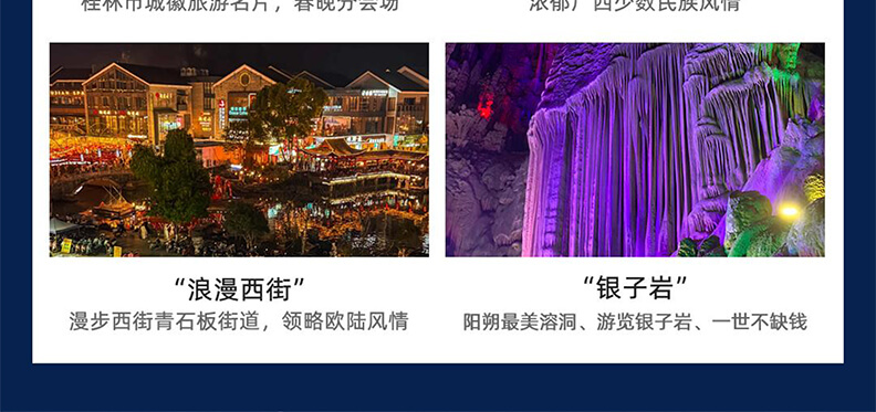 晚上可自行前往大型歌舞【桂林千古情】《门票不含,自理》,是一生必看的演出,用独特的导演手法、全新的表现形式,彰显宋城品质、国际水平。演出分为《桂林传说》《大地飞歌》《千古灵渠》《漓江恋歌》《寻找刘三姐》等幕,金戈铁马,美女如云,再现了一段三生三世的桂林绝恋。演出运用先进的声、光、电、全息等高科技手段和舞台机械,数百位演员倾情演绎,在水陆空三维立体空间,唱响了八桂大地穿越时空的真善美传奇,将掩藏在八百里漓江山水下的八桂文化带入大家的视野。视觉盛宴,心灵震撼!