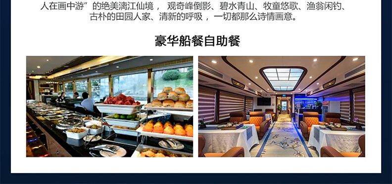 【温馨提示:本行程中安排游览的四星船因政府相关部门接待或大型团队较多或暑假旺季船票紧张,导致四星游船无法游览,我社则酌情调整为游览主题船/三星游船正航+赠送1正餐+电瓶车,成人差价现退80元/人。】