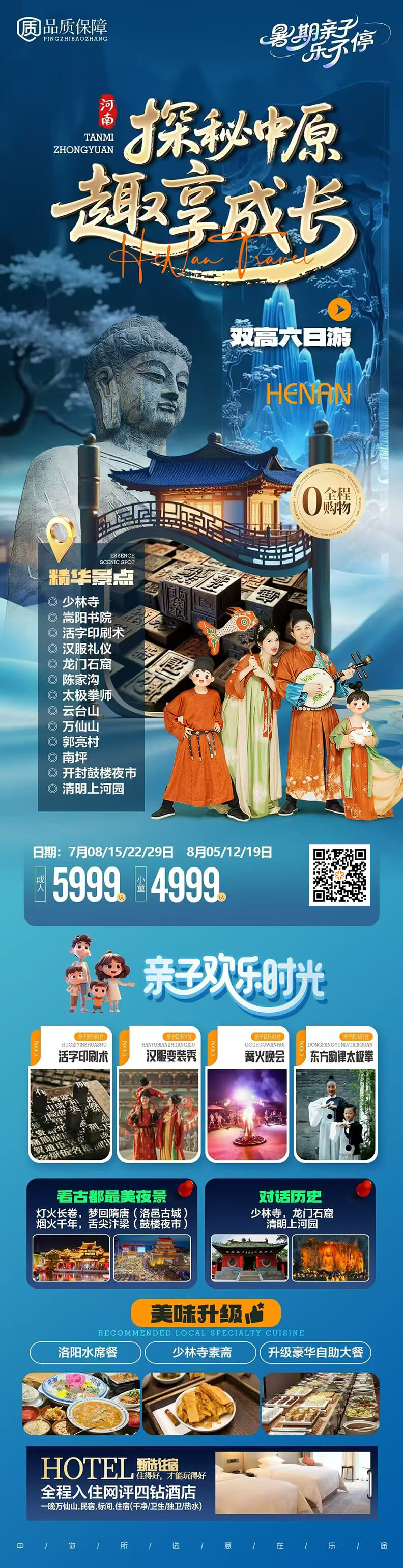 3、门票:河南大部分景区执行分景点验票,且个别景区实行指纹验票,请务必保管好自己的门票,一旦丢失,需要重新购全价票;如果您持有【军官证、老年证等特殊】优惠证件,请您在导游购票之前出示,但是务必保证证件的真实性,如因证件原因造成的门票差价损失,客人自理;