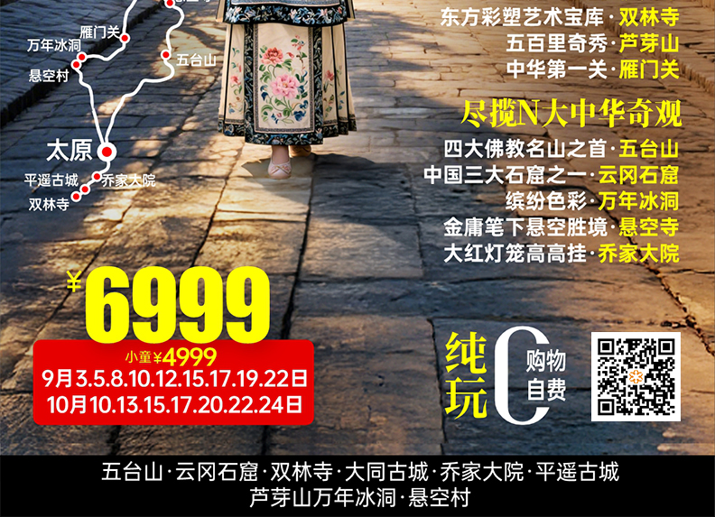 ●行程健康安全重要提醒:为保障出行安全,以下人员请勿参团:患有心脏病、高血压、伴有高热或严重呼吸道症状的重症感冒、心肌梗塞、中风、严重哮喘、癫痫、未痊愈的传染性疾病、慢性阻塞性肺疾病、严重心律失常、不稳定型心绞痛、急性肾炎、慢性肾衰竭、糖尿病等疾病者,以及半年内接受过手术的客人。请如实申报健康状况,若隐瞒病情强行参团,由此产生的一切后果由客人自行承担。旅途中如身体不适,请立即告知工作人员并配合就医。