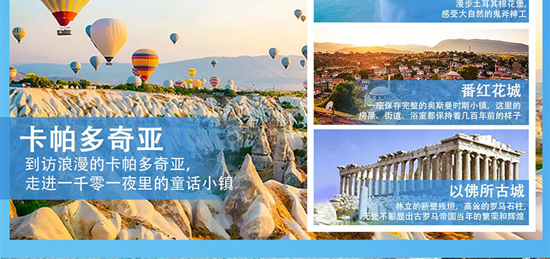 浪漫土耳其深度畅游 10天7晚 国航直飞伊斯坦布尔 浪漫爱琴海(库萨达斯) 世界遗产名录(番红花城) 纯净棉花堡 卡帕多奇亚