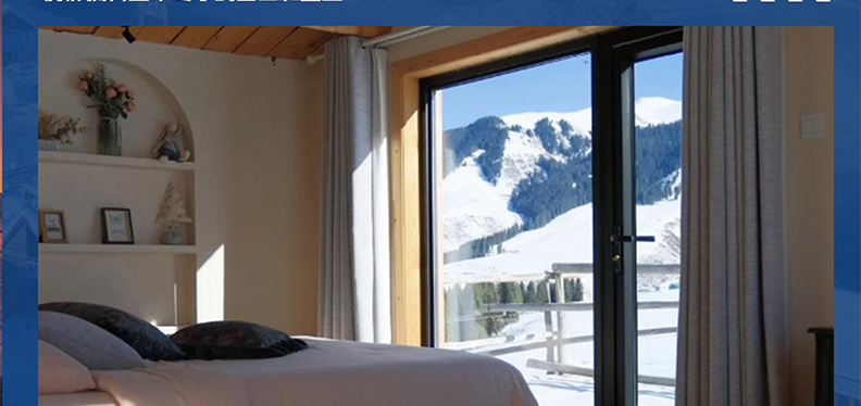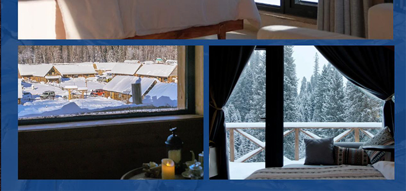 当晚入住景区特色小木屋,则是将这绝美夜色与极致静谧私藏。 屋内的地暖或火墙将严寒彻底隔绝,你可以捧着热茶,透过宽大的玻璃窗继续凝望星空。当炉火渐熄,万籁俱寂,你将沉入一个连梦境都变得纯净的睡眠之中,直到次日清晨,被洒在雪原上的第一缕阳光唤醒。
