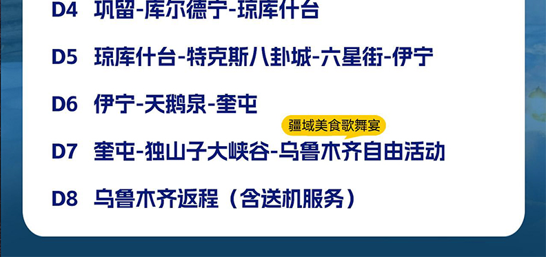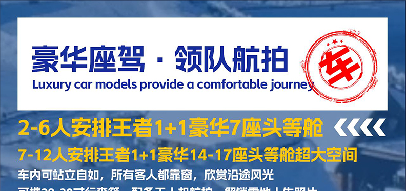 若您乘坐车辆为14-17座头等舱,库尔德宁及琼库什台需要更换为7座商务车(大通G10*G20等)前往;保证一人一座。