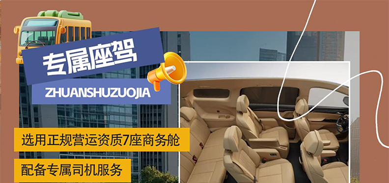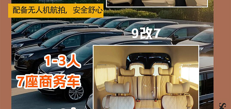 专属用车:1-3人安排7座商务车,4-6人升级9改7航空座椅车,保证一人一座(接送站安排其它车型,自由活动不含车)