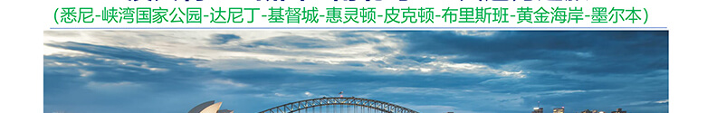 【悉尼歌剧院(外观)】,它是公认的 20 世纪世界七大奇迹之一,是悉尼最容易被认出的建筑,它白色的外表,建在海港上的贝壳般的雕塑体,象飘浮在空中的散开的花瓣,多年来一直令人们叹为观止。 【海德公园】 她位于悉尼市中心,初建于 1810 年,已经近 200 年的历史,园内有大片洁净的草坪,百年以上的参天大树,令人心旷神怡是休闲的一个好去处。