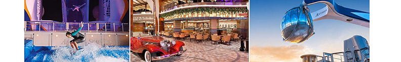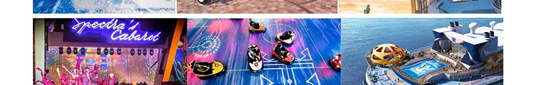 今天将开启惬意的海上巡航!登上北极星,升至距离海平面 88.6 米的高空!从透明玻璃望出去,既能享受无边的蔚蓝大海,又能把赞礼号的甲板景色尽收眼底!甲板跳伞,感受无限运动的刺激!甲板冲浪,独特的水上体验!海上也有攀岩墙!在甲板上高高竖起的 40m 高墙,是对技术和胆量的考验!多功能运动馆,一个场馆,N 种玩法!这里有皇家碰碰车,还有 Xbox、滑冰、篮球、足球、乒乓球等精彩玩乐,全家老少都能收获属于自己的快乐!