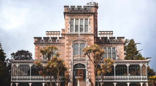 邮轮抵达达尼丁,达尼丁被称为新西兰野生动物之都,并对其美丽的建筑遗产、令人惊叹的风景和独特的生物多样性引以为豪。四周群山环绕,山脚下悠长的海港风景如画,各种动物齐备的城市,在海岸线上有隧道海滩,各种奇形怪状的风蚀岩石,同时还有各种动物海报,信天翁等等的海滩,真是一个观赏野生动物的天堂,达尼丁是南半球维多利亚时代和爱德华时代风格建筑保存最好的城市之一。 岸上观光:新西兰唯一的古城堡【拉纳克城堡*】,这里是半岛上的制高点,无限风光尽收眼底。 城堡于 1871 年开始建造,二百名工匠建造完成,历时五年,之后再由三名英国雕刻师花费十二年的时间装饰内部。 它采用复兴主义建筑与英国殖民时代建筑相结合的独特建筑风格,有意大利别致的石膏天花板、威尼斯华丽的玻璃墙、一吨重的大理石浴盆、新西兰非常好的木质家具古董、还有南半球唯一的乔治王时代的悬梯,富丽堂皇,不可言喻。