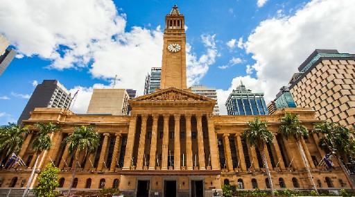 【布里斯班市政厅】新古典风格的市政厅于 1930 年落成,布里斯本市议会所在地。是一座具有意大利典型新古典主义派风格的棱柱型塔式建筑,深具南欧风情。