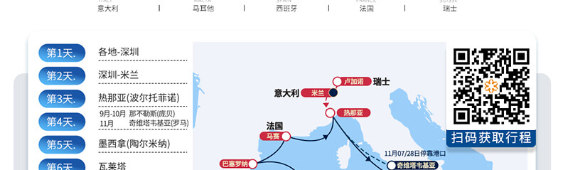 各地飞指定城市国际机场集合,搭乘次日凌晨航班飞意大利米兰。