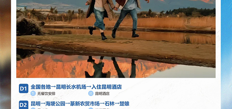 C 线 玉水寨→解锁雪山大片(旅拍):乘车前往【玉水寨】玉水寨景区位于云南省丽江县城北部十五公里的玉龙雪山脚下,国家 4A 级景区。景区占地 208 亩,平均海拔 2700 米,山寨自然纯朴,风景秀丽,更是丽江纳西族东花间·糖—昆大丽双飞一动 6 天