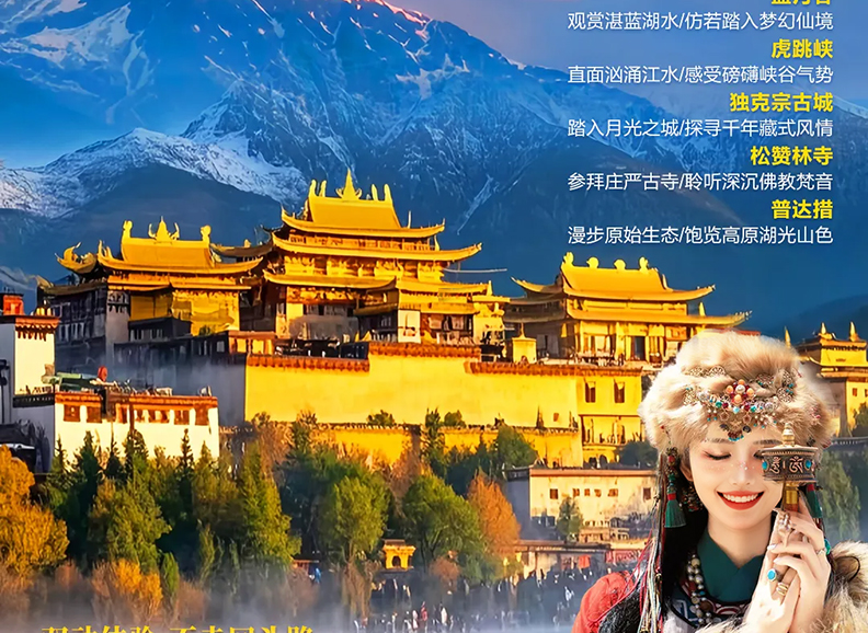 早餐后乘车前往誉有“小布达拉宫”之称的【噶丹·松赞林寺】,该寺依山而建,外形犹如一座古堡,集藏族造型艺术之大成,又有“藏族艺术博物馆”之称。