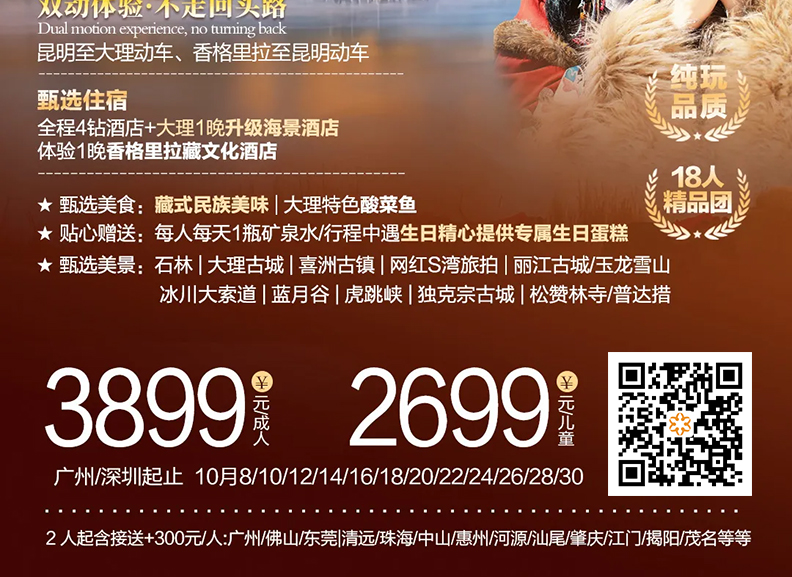 1、产品内容随淡旺季变化调整较为频繁,网页中的产品介绍、行程安排、价格构成等相关信息仅供 参考所用,具体以旅行社电话确认为准,大型团队及会议价格另议;