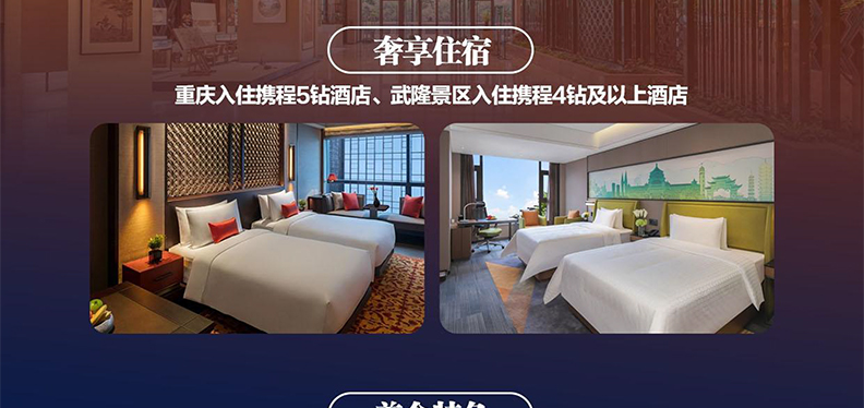 (1)重庆入住酒店双人标准间(出现自然单间,由客人补足房差);