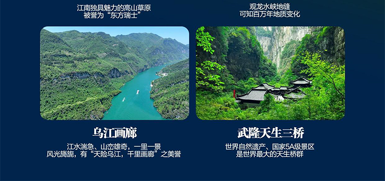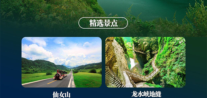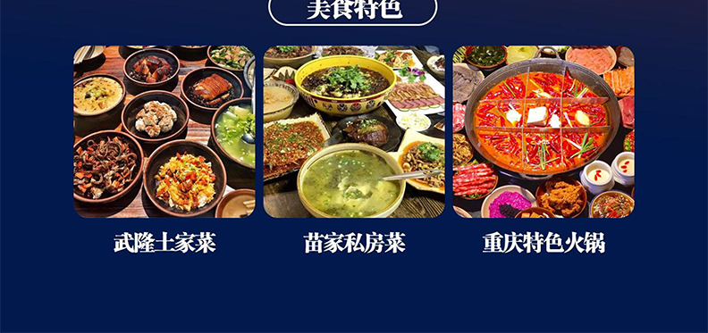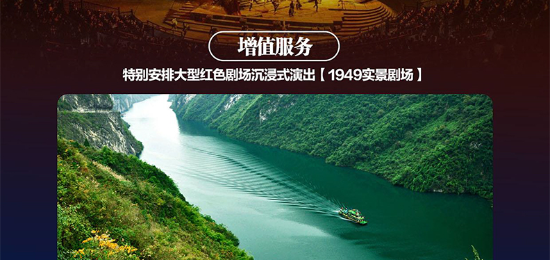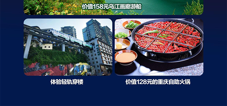 3、门票:天坑三桥+天坑三桥换乘+天坑出口电瓶车+龙水峡地缝+龙水峡地缝换乘+仙女山+仙女山小火车+乌江画廊游船+云端之眼+轻轨体验+1949红色剧场演出(普通席)。(游客必须携带二代身份证,如未携带补门票差300元/人);