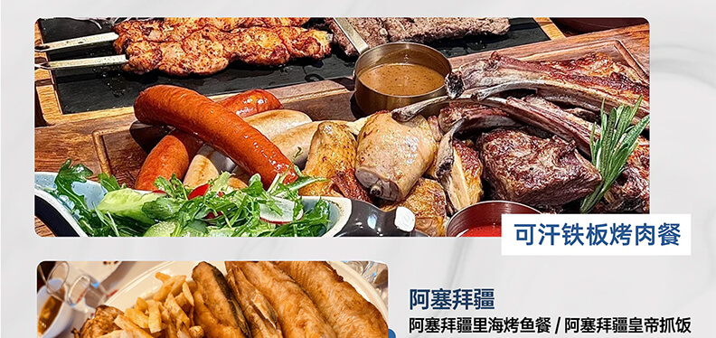 晚餐特别安排观赏木卡姆特色歌舞表演及品尝阿塞拜疆皇帝抓饭。